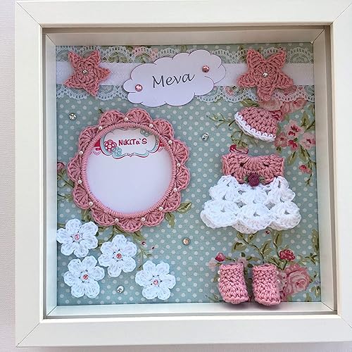 Photo Frame With 3d Crochet Applications Wall Decor To The Nursery Room Cute Idea For Baby Shower Gift Or Other Special Occasion